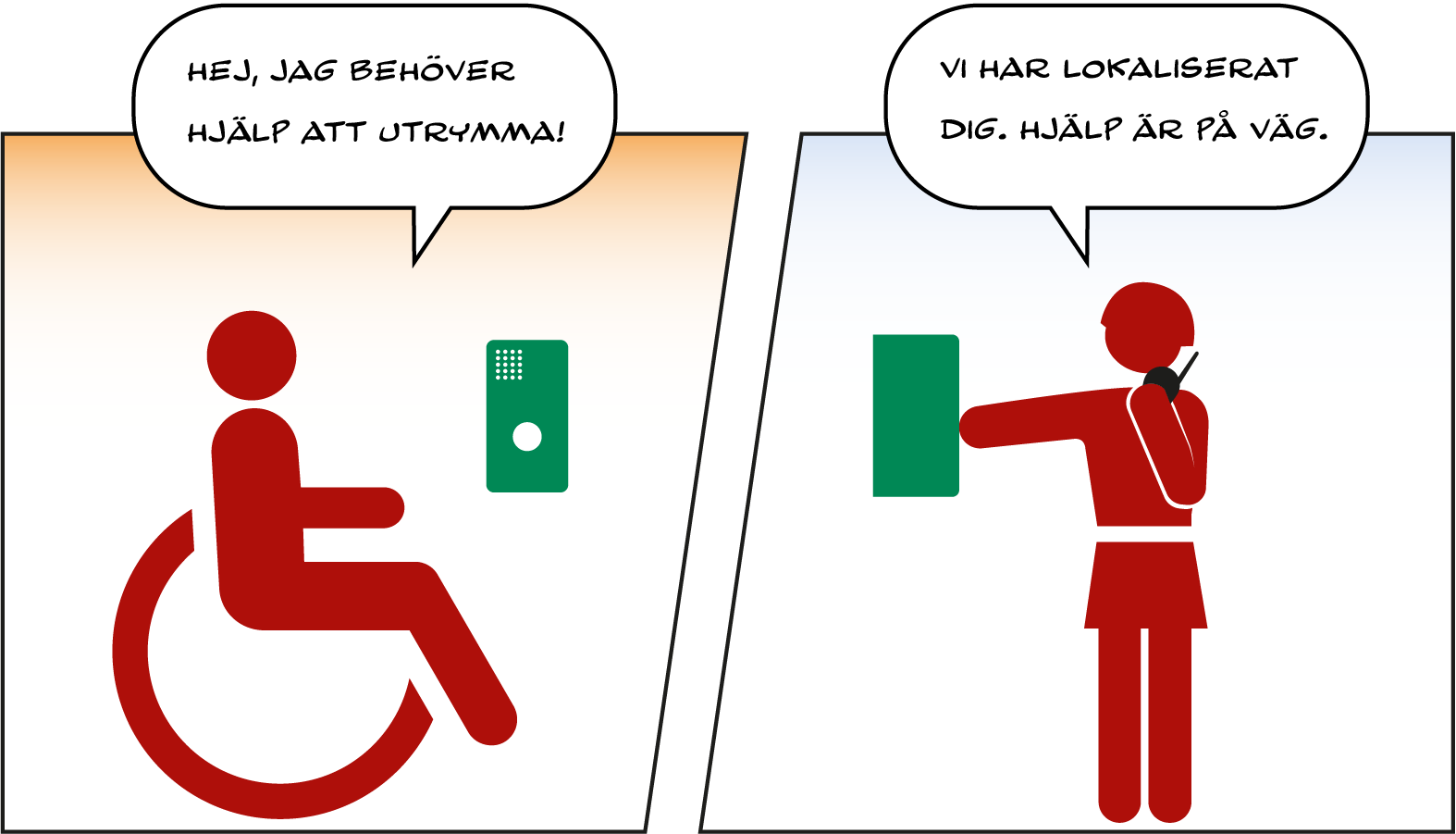 Säkra utrymningsplatser är en livsviktig funktion i byggnader där personer kan påkalla och invänta hjälp för att utrymma byggnaden i nödsituation. I händelse av brand eller annan fara kan personer inte alltid utrymma på egen hand och därför behövs trygga, skyddade zoner som är enkla att ta sig till även för de med nedsatt rörelseförmåga. Men ett skyddat utrymme räcker inte. Den som befinner sig på en säker utrymningsplats måste också kunna få kontakt med omvärlden. Tvåvägskommunikation gör det möjligt att: